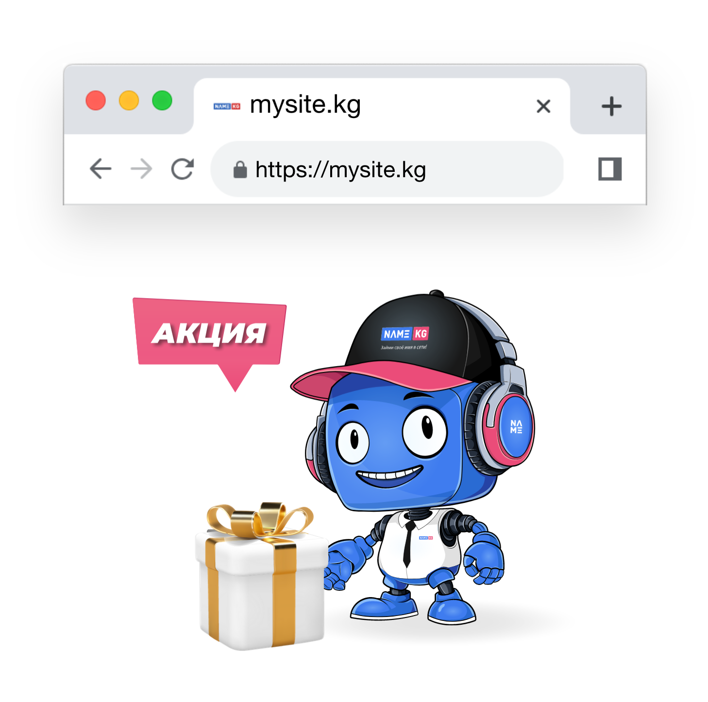 Для каждого сайта мы бесплатно регистрируем домен KG или COM. Просто выберите подходящий домен при создании сайта.